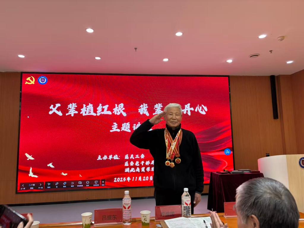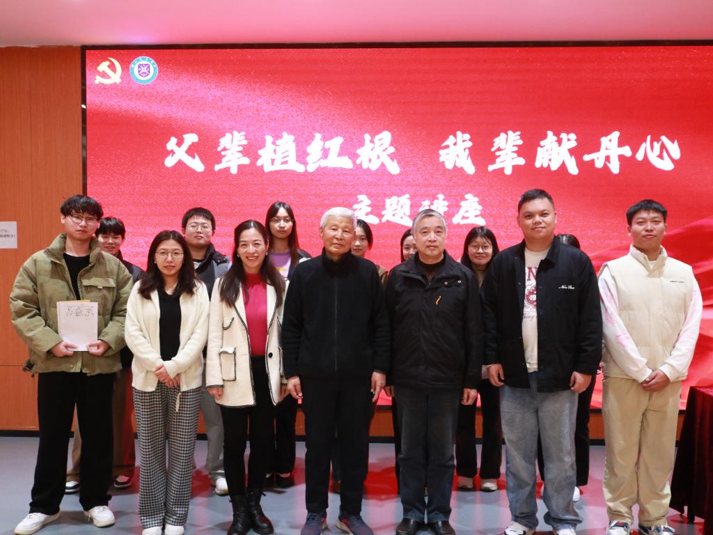 11月20日,800cc全讯白菜网主站图书馆报告厅内暖意融融、掌声阵阵,百余名师生代表齐聚一堂,共同聆听《父辈植红根 我辈献丹心》红色家史讲座。76岁的主讲人吕盛东先生以家族红色故事为脉络,以饱含深情的讲述带领师生穿越烽火岁月,感受两代人的信仰传承,现场数次响起经久不息的掌声。洪山区关工委副主任库盛国、办公室副主任李彦、全讯800cc大白菜官网辅导员王诺杰、徐露与全院120名学子共同聆听报告。
