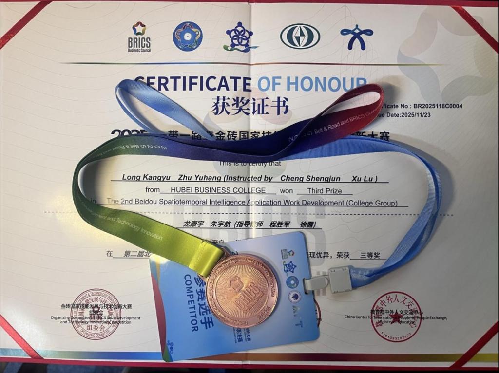 这场跨越国界、聚焦创新的技能盛宴,不仅是北斗技术应用成果的展示平台,更是青年学子交流成长的广阔舞台。湖商学子将以此次大赛为契机,继续深耕专业、勇于创新,把个人理想融入国家发展大局,让青春在科技创新的浪潮中绽放更绚丽的光彩。
