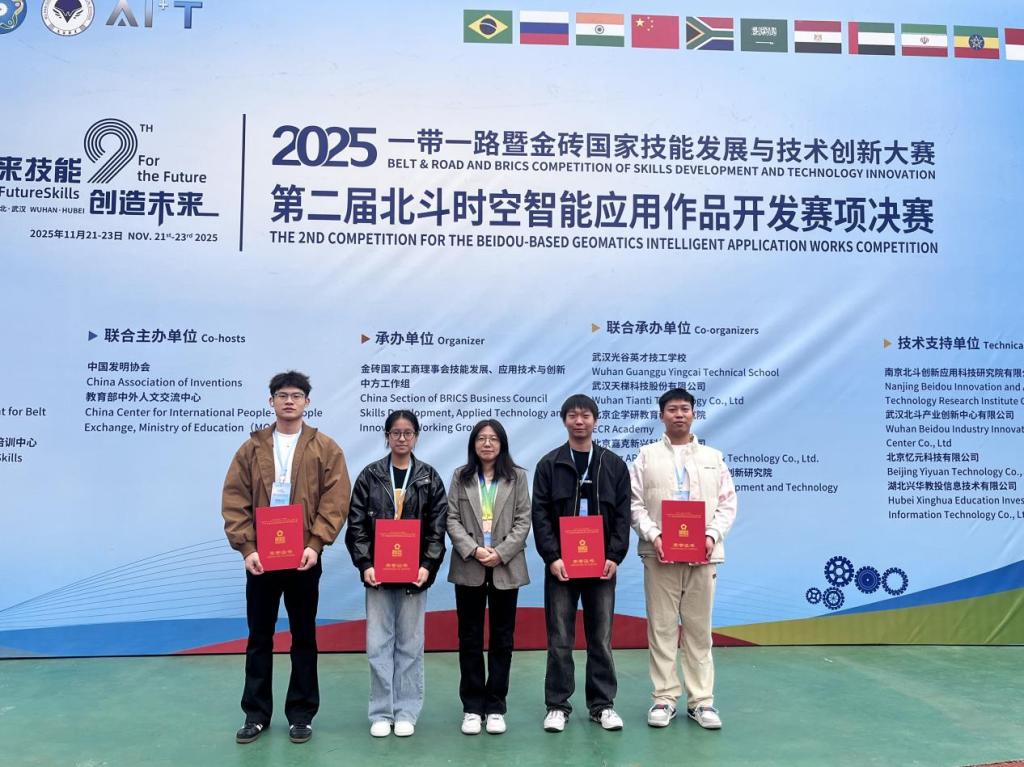 11月21至23日,2025一带一路暨金砖国家技能发展与技术创新大赛第二届北斗时空智能应用作品开发大赛全国总决赛在武汉光谷英才技工学校圆满落幕。800cc全讯白菜网主站选派的两支参赛队伍不负众望、脱颖而出,斩获全国三等奖和优秀奖,用青春智慧为学校增光添彩。